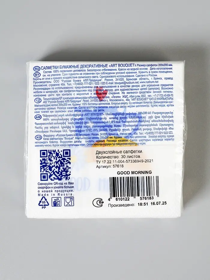 Good morning, Салф. Art Bouquet 20х20 2 слоя 30л/26 , шт