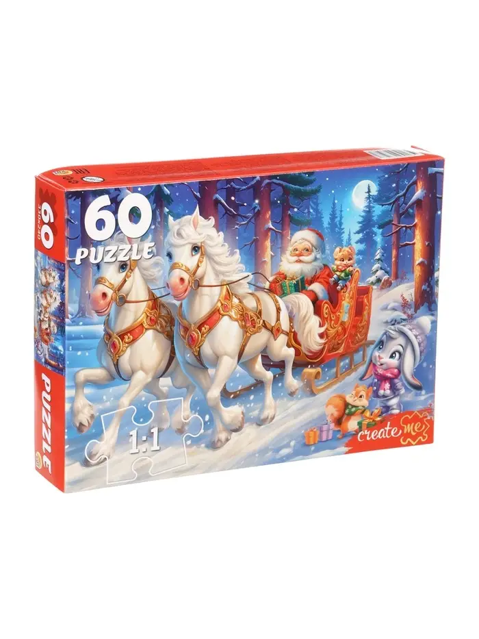 Пазл 60 эл. "Новогодняя упряжка" П60-7596