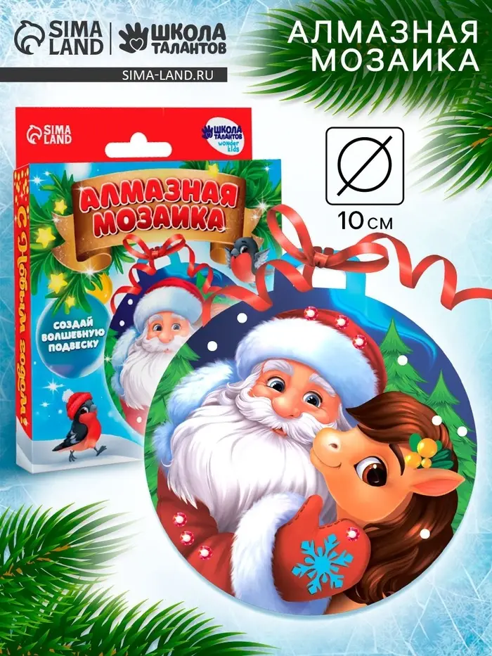 Алмазная мозаика на круглой подвеске 10×10 «Дед Мороз и Лошадка»
