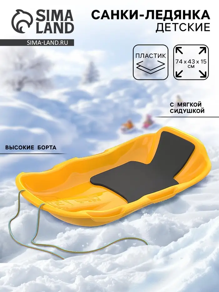 Санки с мягкой сидушкой «Комета», желтые 74×43см