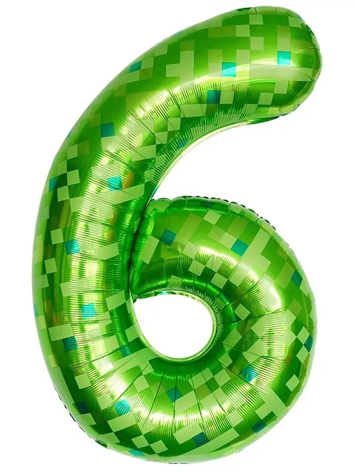 Воздушный шар фольгированный 40" цифра "6" пиксели, в ин.уп.