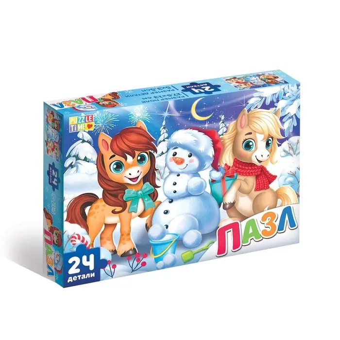 Пазл "Новогодние забавы лошадок", 24 элемента, большая коробка
