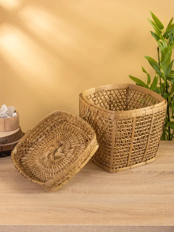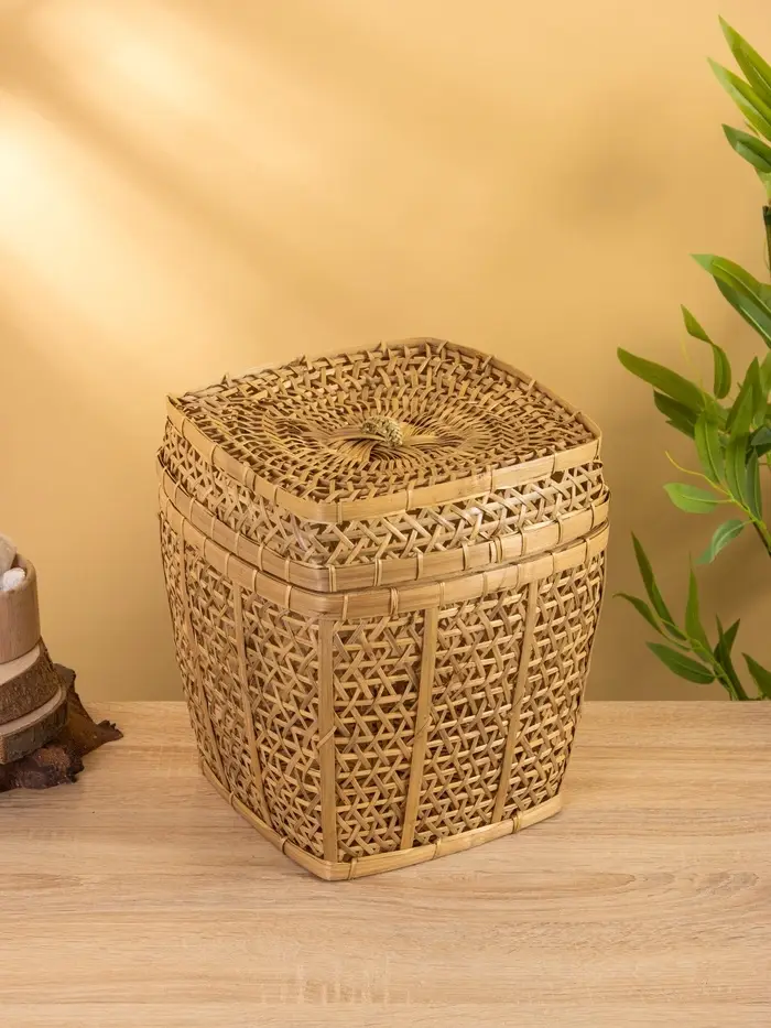 Корзина плетёная "Баскет" бамбук 27х27х37 см, светлая