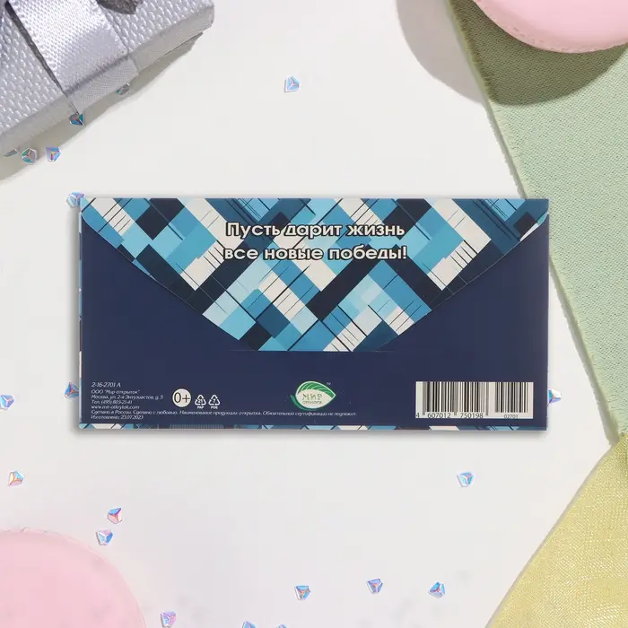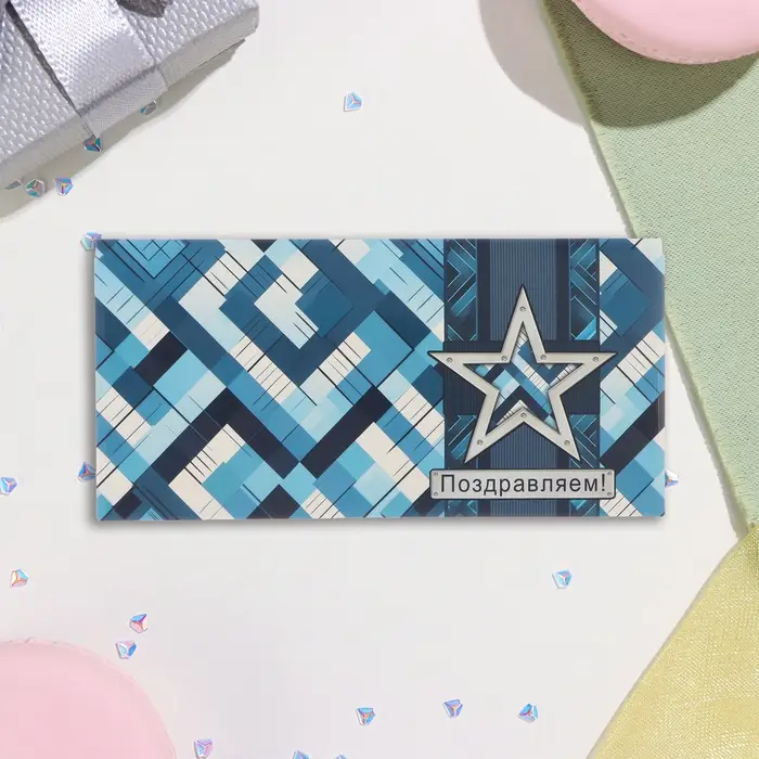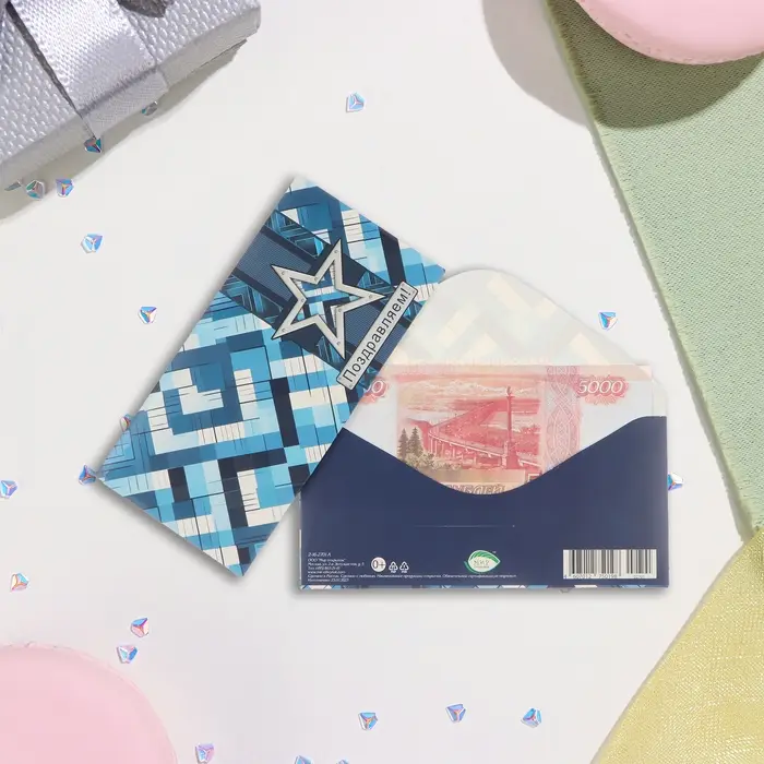Конверт для денег «Поздравляем!» глиттер, конгрев, синий фон, 17×8 см