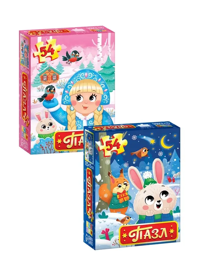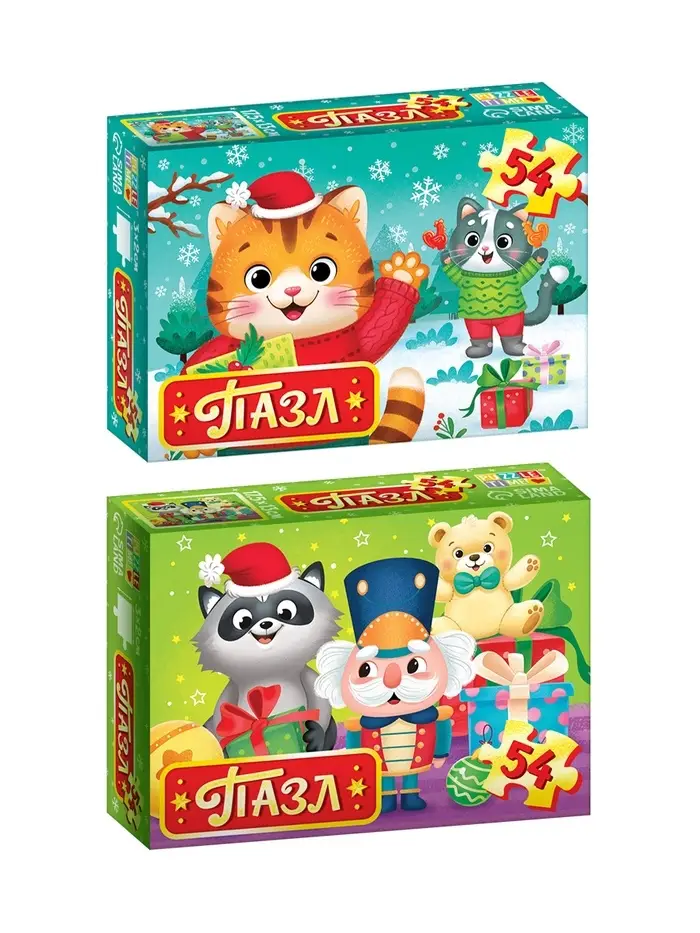 - Каждый пазл содержит 54 элемента, выполненных из прочного картона.