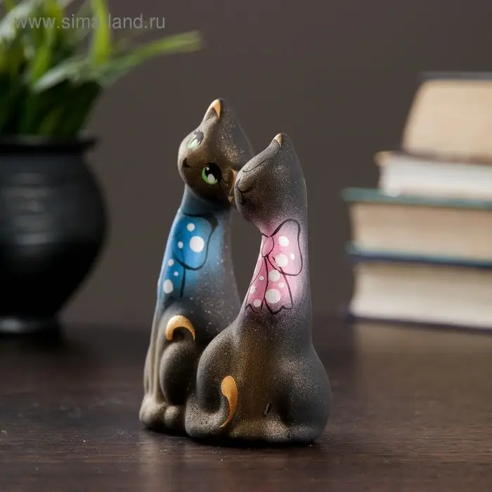 Фигура "Коты Влюбленные с бантиками" черные 5х9х12см