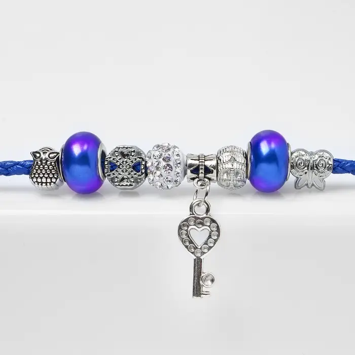 Браслет ассорти «Марджери» бусины с ключиком, цвет бело-синий в серебре, L=19 см