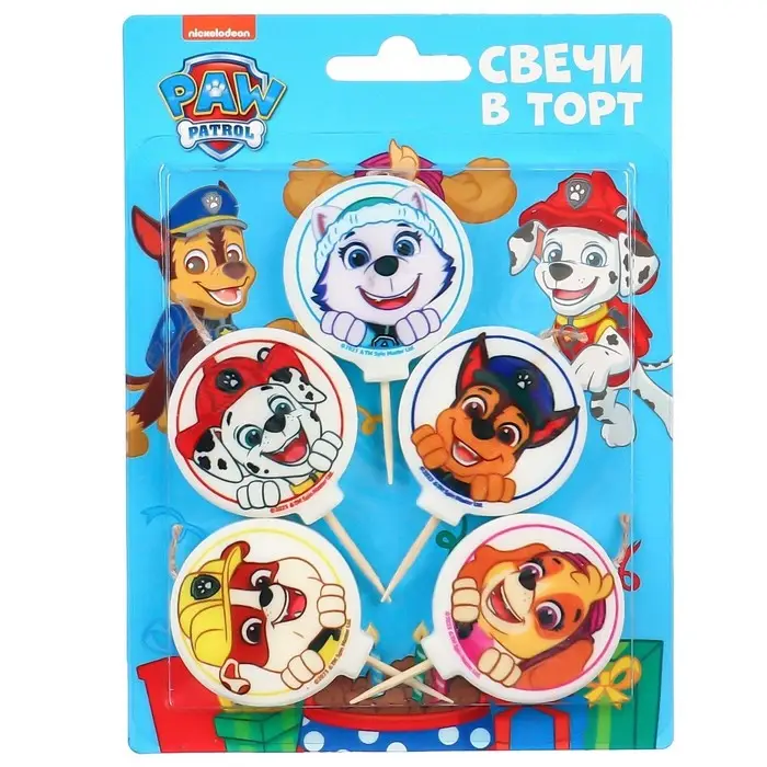 Свеча для торта "С Днем Рождения!", 5 штук, Щенячий патруль