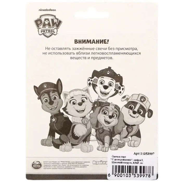 Свеча в торт цифра 3 "С Днем рождения", Щенячий патруль, 8,5×5 см