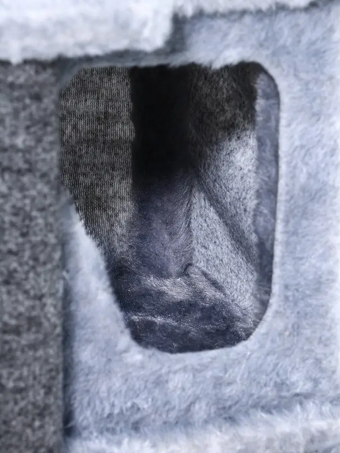 - Плотный ковролин: Устойчив к когтям, не выцветает со временем. Серый цвет гармонирует с интерьером.