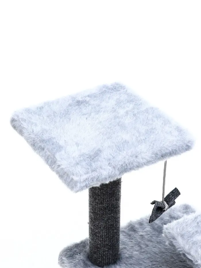 - Многофункциональная конструкция: Нижний домик с мягкими стенками, две просторные полки и вертикальная когтеточка — все необходимое питомцу в одном комплексе.