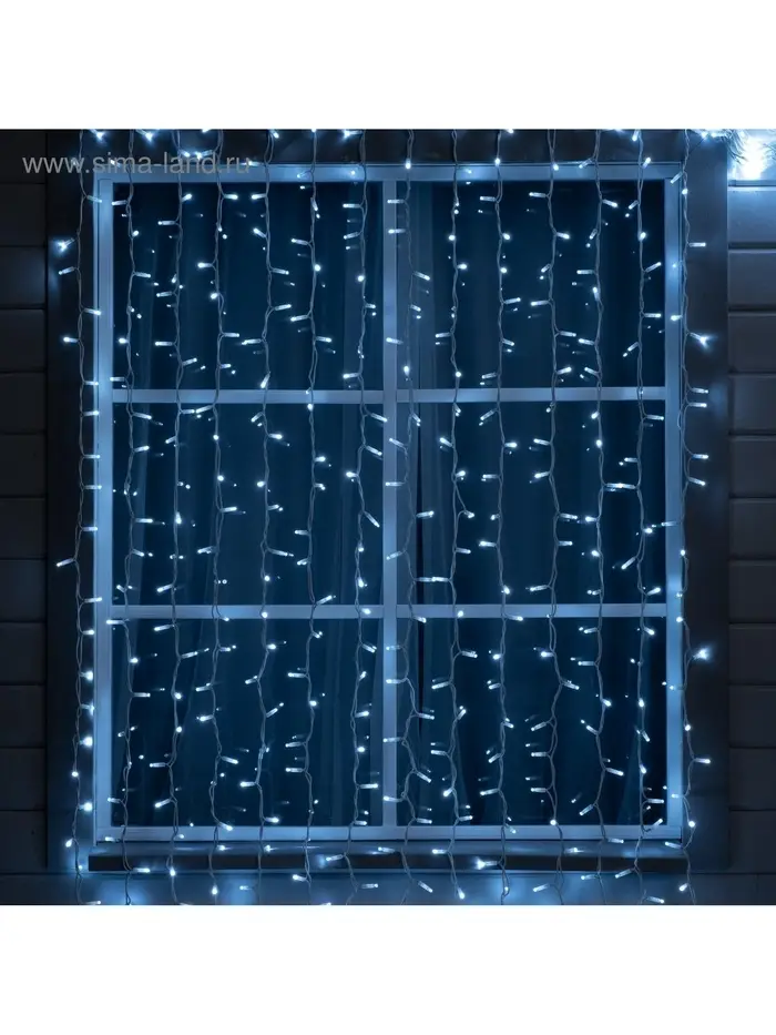 Гирлянда «Занавес» 2 × 3 м, IP65, УМС, белая нить каучук, 600 LED, свечение белое, 220 В