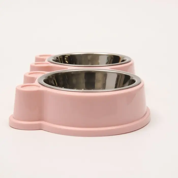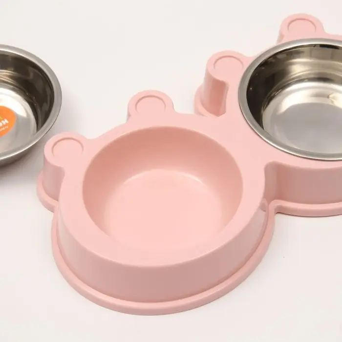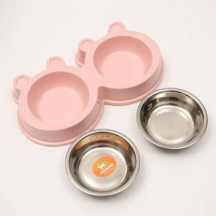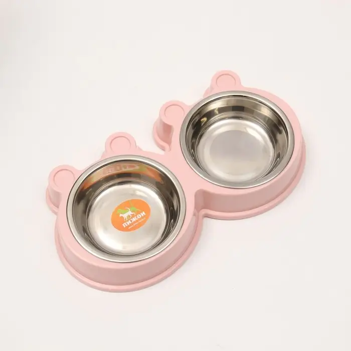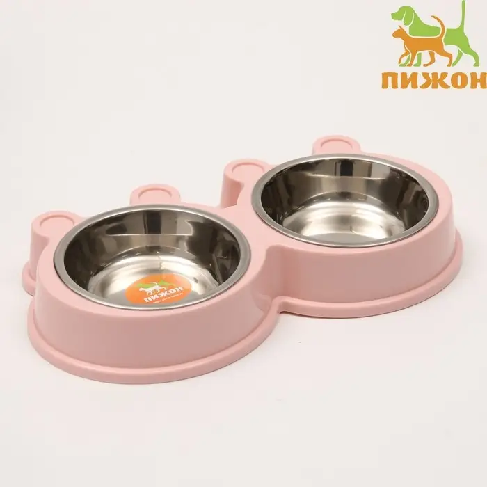 Миска металлическая двойная на пластиковой основе, 27,8 х 15,5 х 4 см, розовая