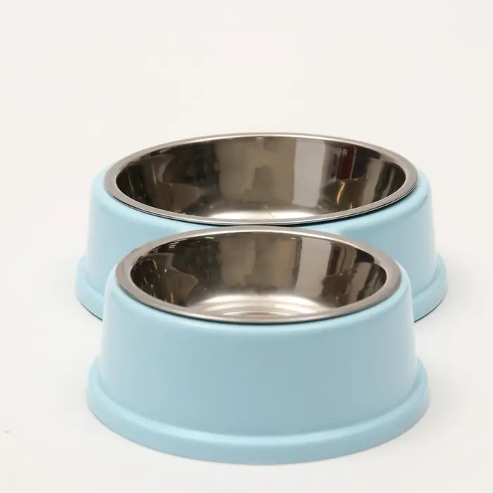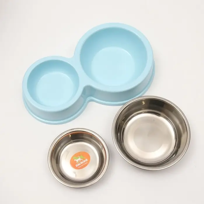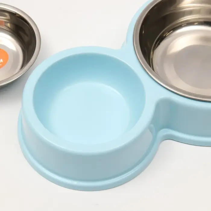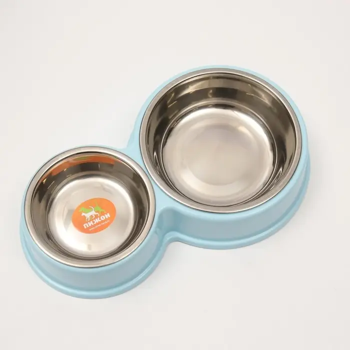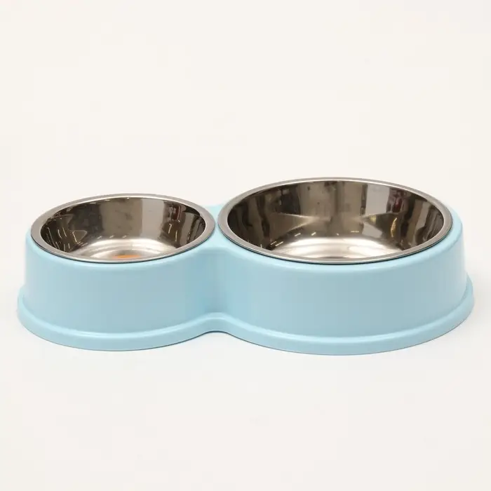 Миска металлическая двойная на пластиковом основании, 28 х 17,3 х 5 см, голубая