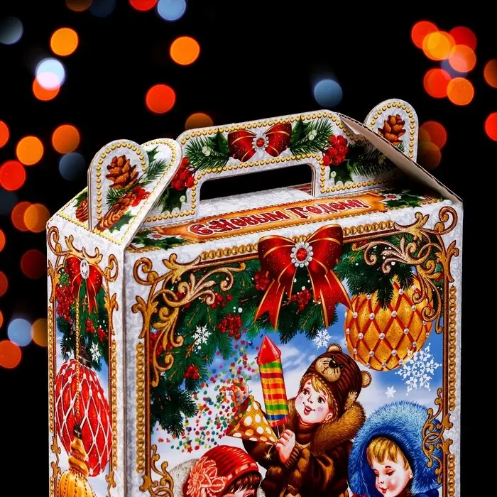 Коробка складная прекрасно подойдет для оформления подарка на Новый год.