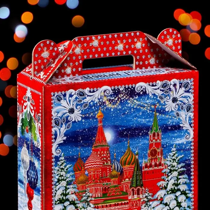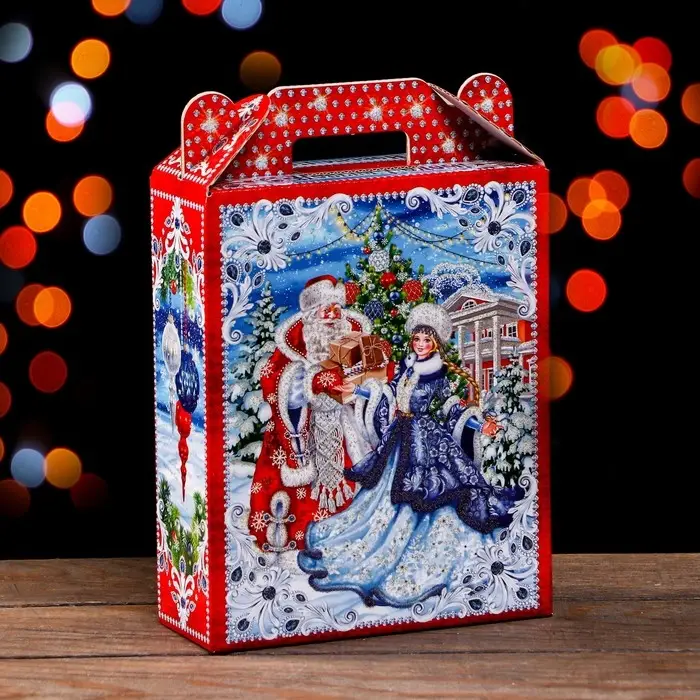 Коробка складная прекрасно подойдет для оформления подарка на Новый год.