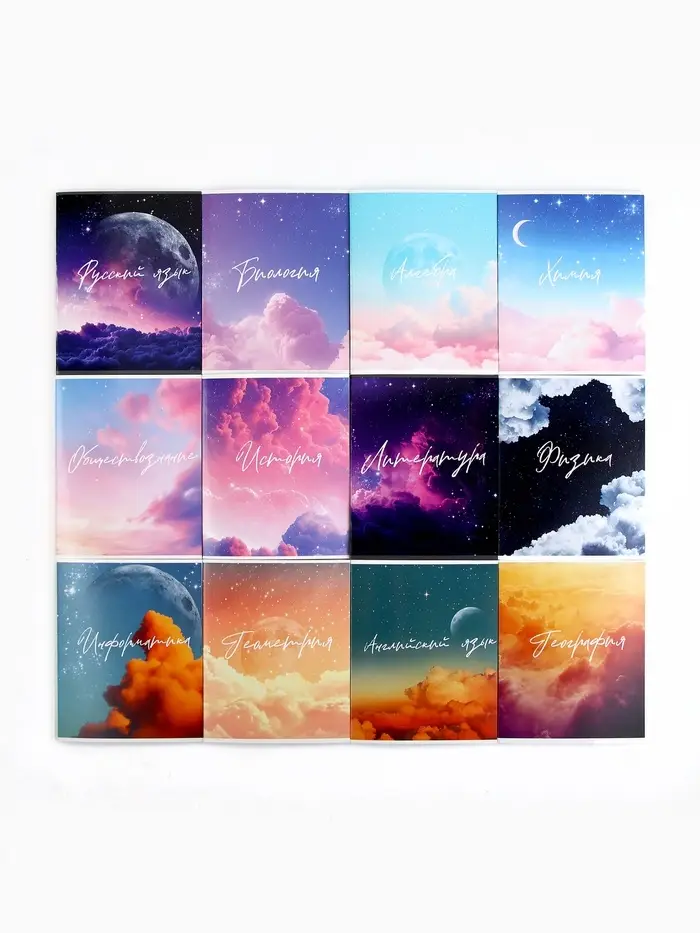 Тетради в клетку, предметные, 48 л., набор из 12 шт., блок №1, Space
