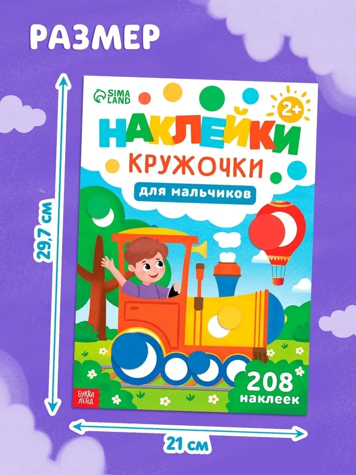 Книга «Наклейки-кружочки для мальчиков», 208 наклеек