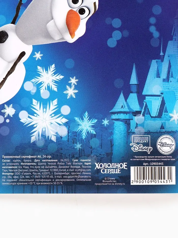 Прививочный сертификат А6, 24 стр "Холодное сердце"