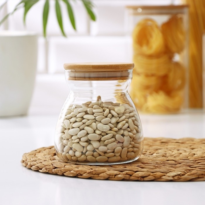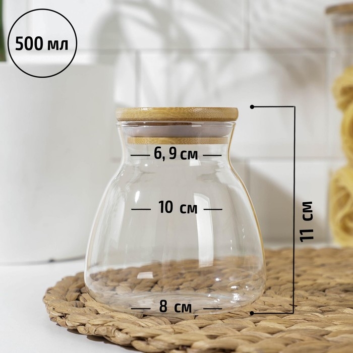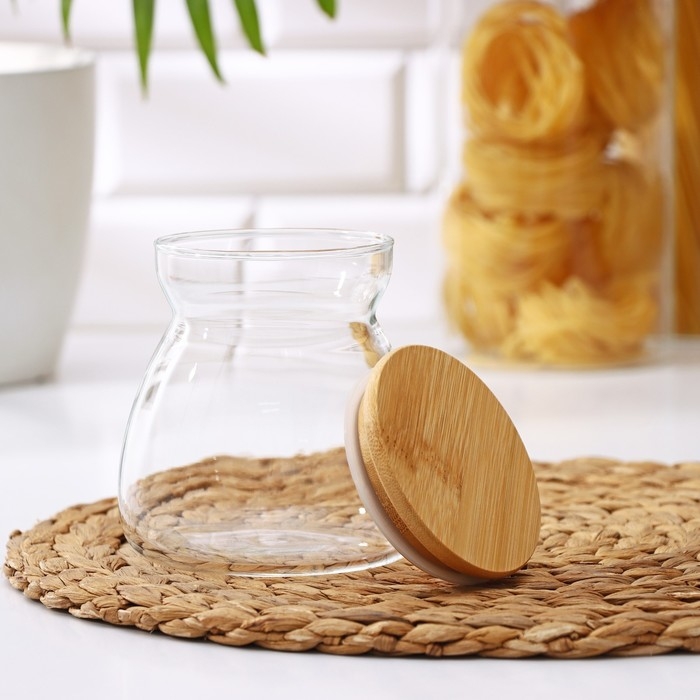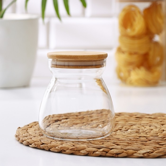 Банка стеклянная для сыпучих продуктов с бамбуковой крышкой «Бамбук», 650 мл, 11×12 см
