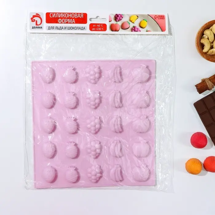 Форма для мармелада Доляна «Фруктовый рай», 22,5×23,5×1,5 см, 25 ячеек, цвет розовый