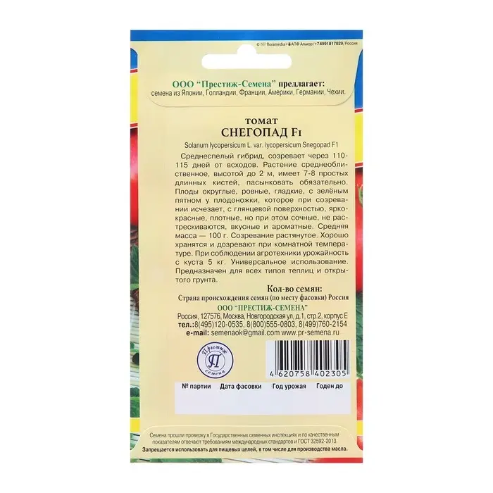 Семена Томат "Снегопад F1", ц/п, 10 шт.