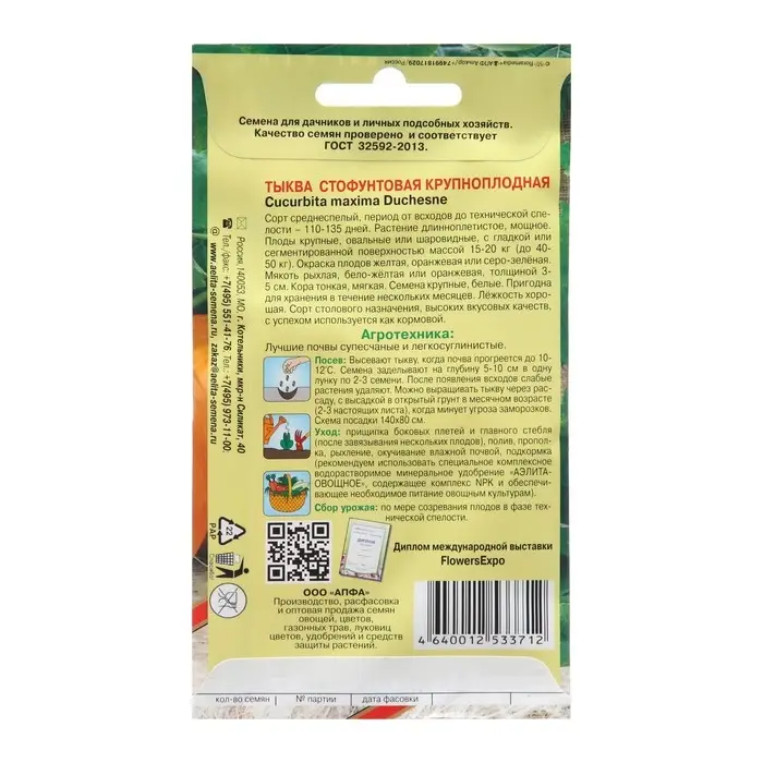 Семена Тыква крупноплодная "Небывалый размах", 2 г