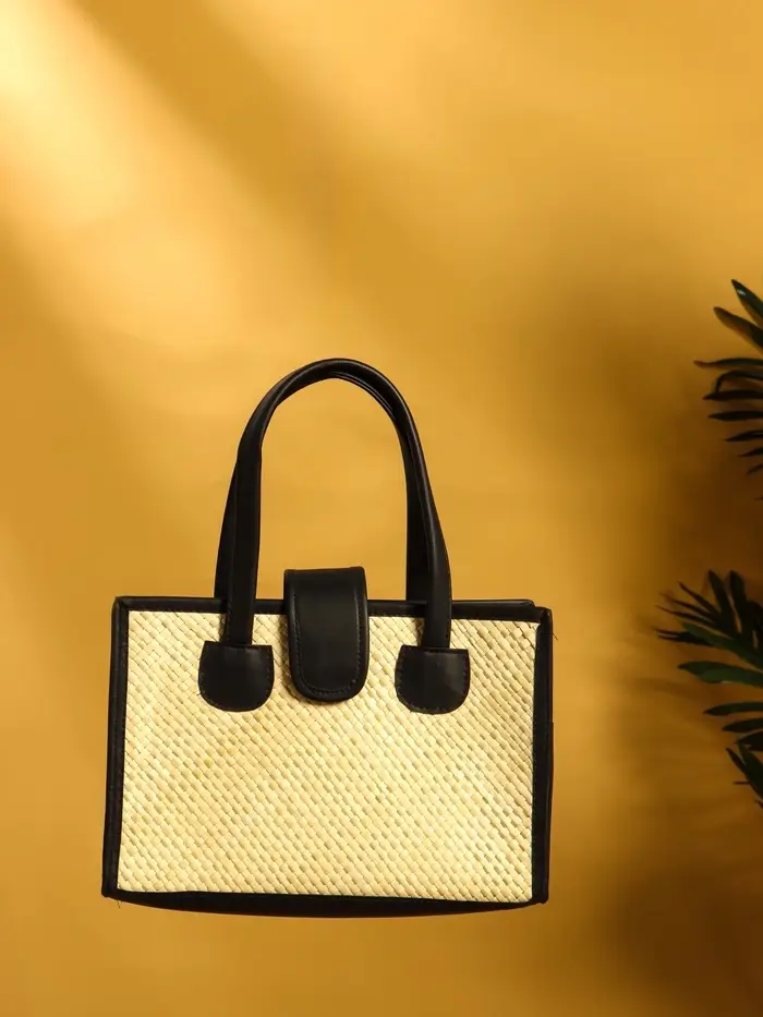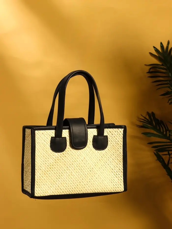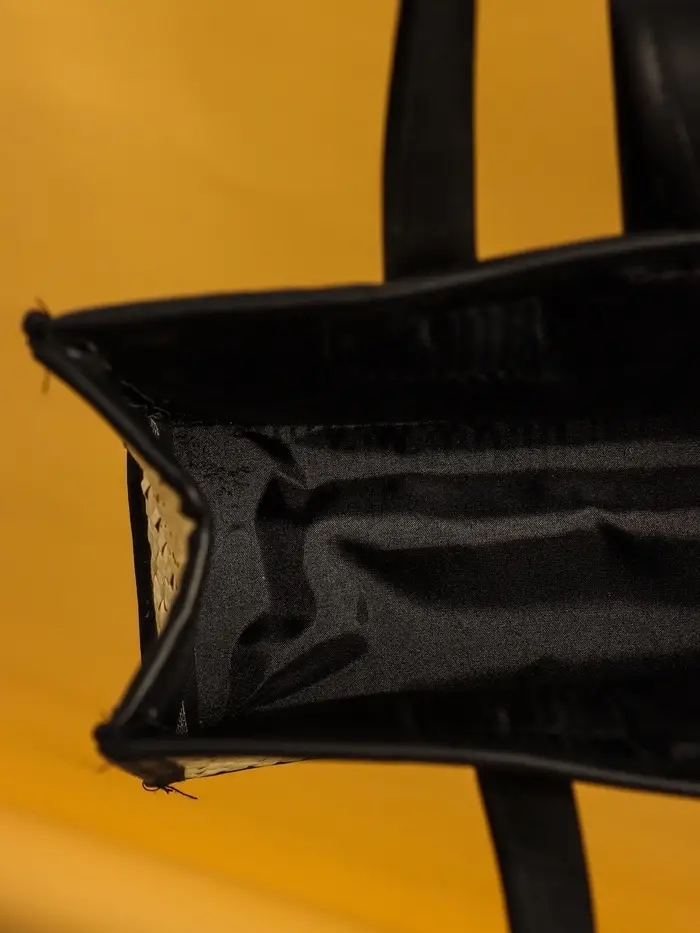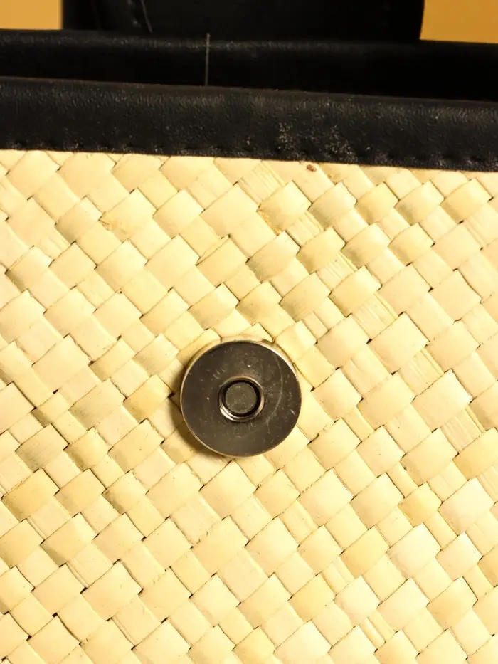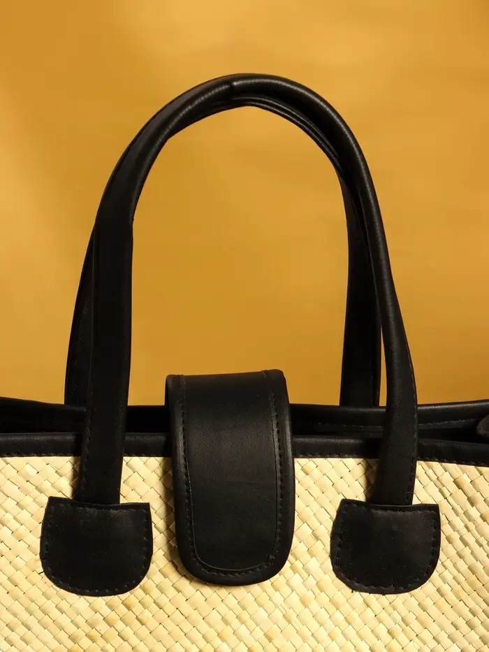 Сумка плетёная на застёжке из пандана 30х10х35 см, бежево-чёрный