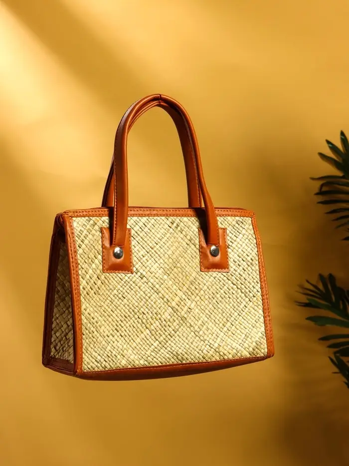 Сумка плетёная на молнии из пандана 30х10х35 см, светло-коричневый