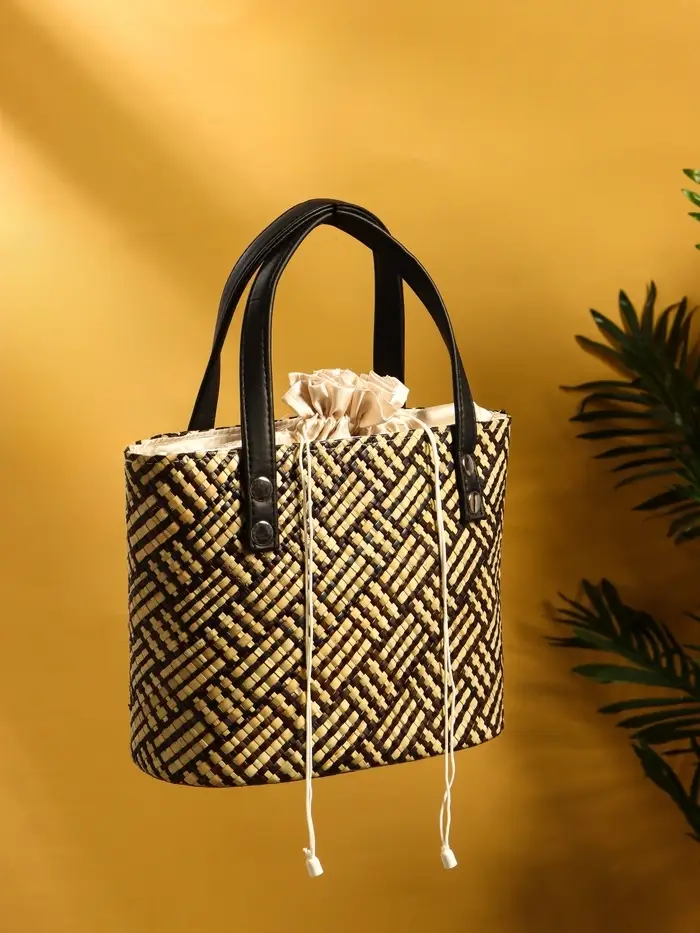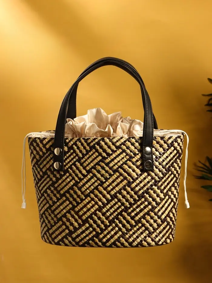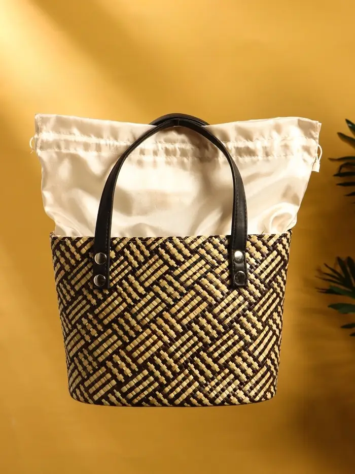 Сумка плетёная из пандана 25х18х38 см, цв. бежево-коричневый