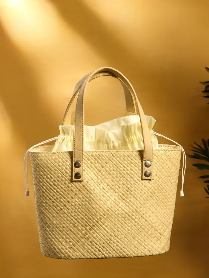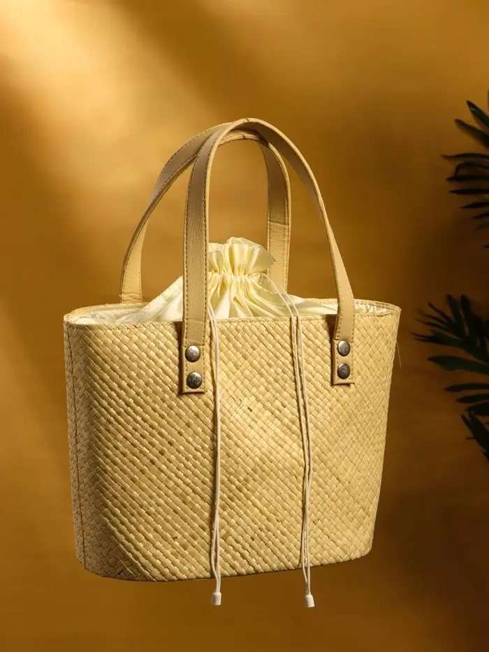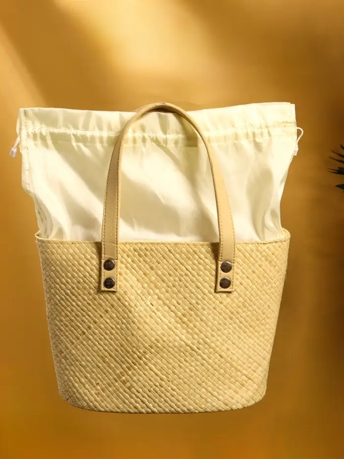 Сумка плетёная из пандана, 27×17×40 см, бежевая