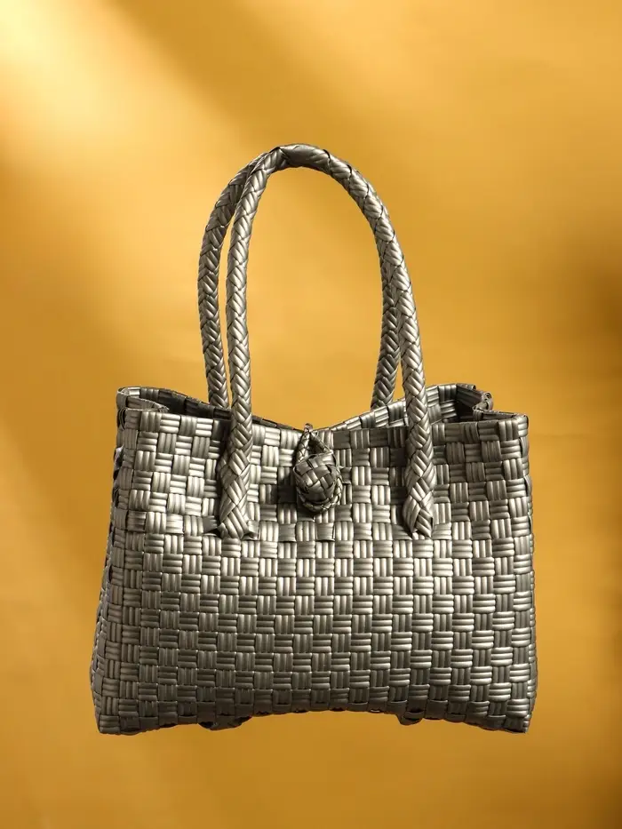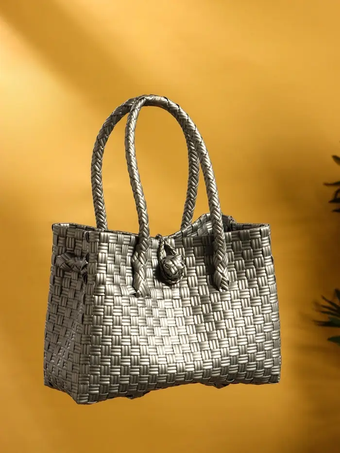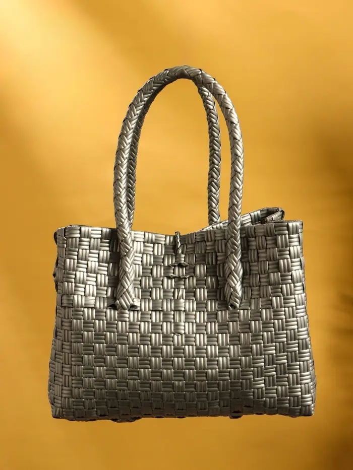 Сумка плетёная пластиковая 23х11х30 см, цв. серебристый