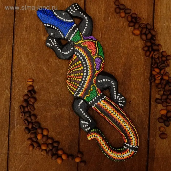 Не каждый осмелится разместить такое панно в своем интерьере. Ведь порой кажется, что это настоящая живая рептилия. Искусные индонезийские мастера изобразили все настолько детализировано четко, что хочется прикоснуться к панно декоративное "Ящерица геккон" 24х7,5х1 см МИКС, чтобы ощутить тонкие линии изгибов этого животного.