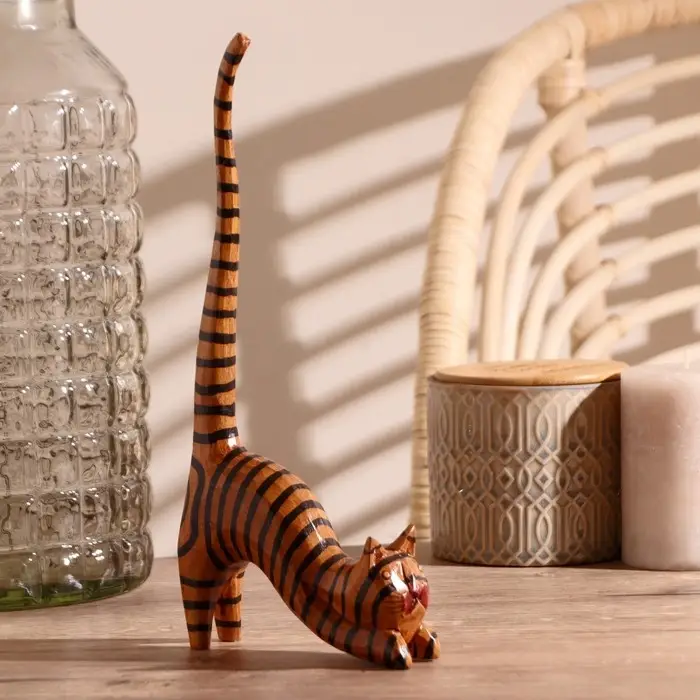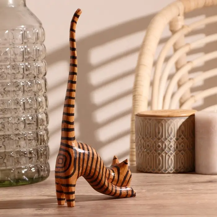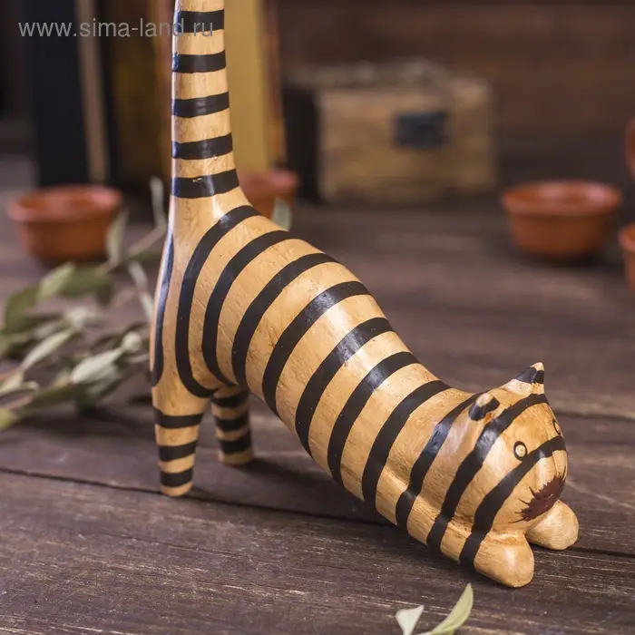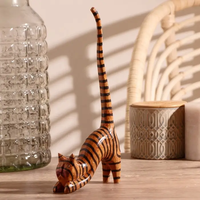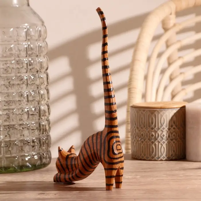 Сувенир дерево "Кошка полосатая под кольца" 12х4х25 см