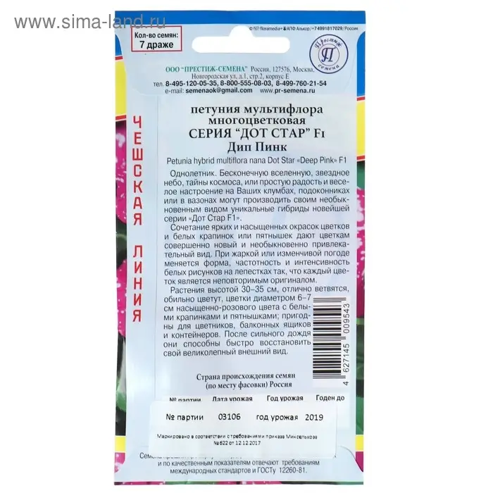 Семена цветов Петуния "Дот Стар Дип пинк" F1, 7 др