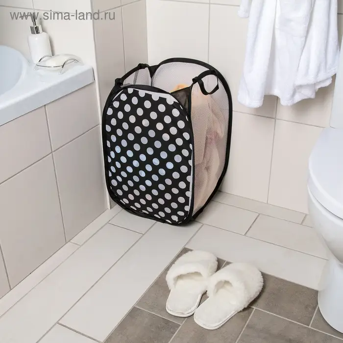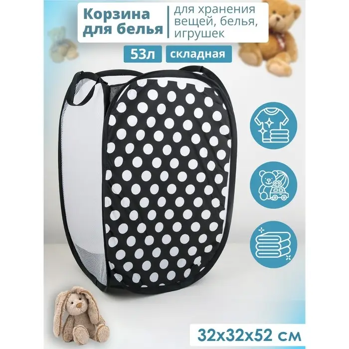 Корзина-сетка Доляна «Горошек», складная, 32×32×52 см, цвет чёрный