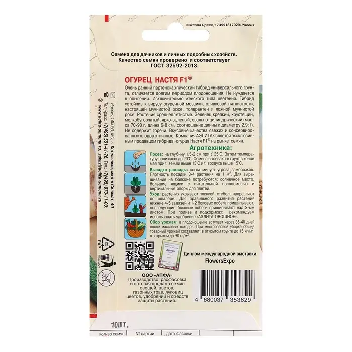Семена огурца "Великолепная пятерка", F1,набор 5 шт