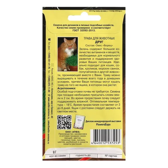 Семена Трава "Друг для животных", 8 г