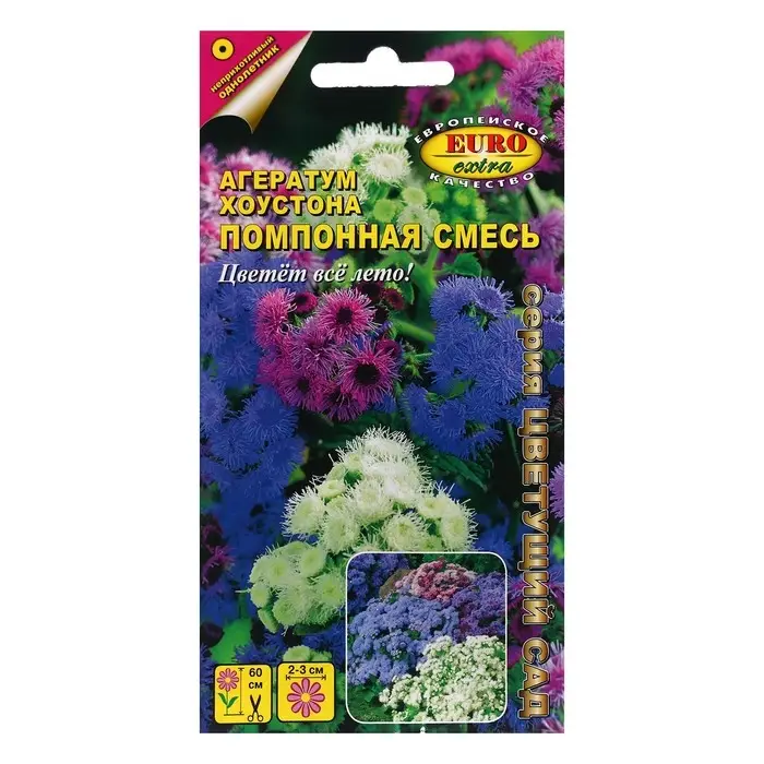 Семена цветов Агератум "Хоустона Помпонная", смесь, 0,1 г