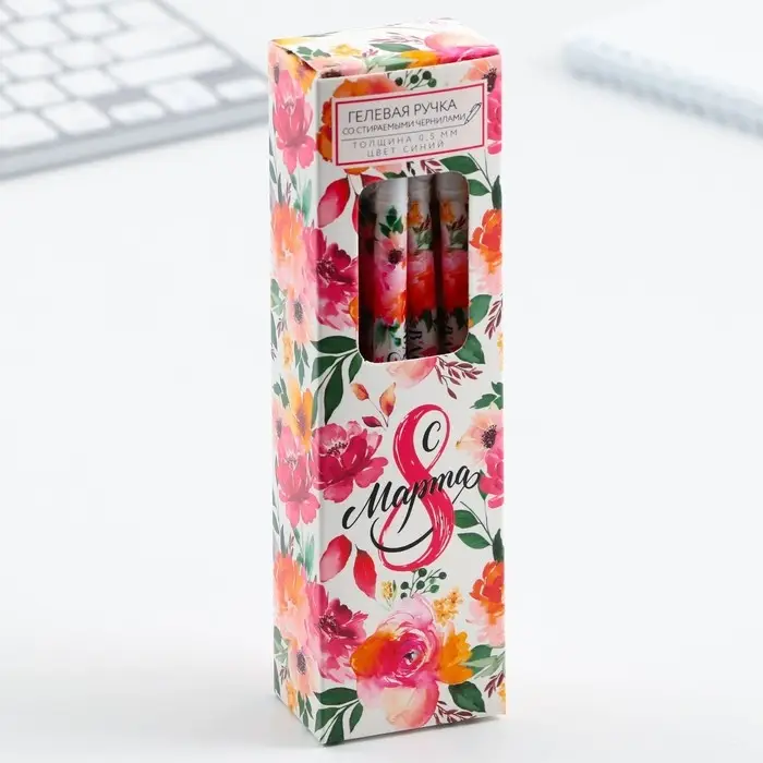 Ручка пиши-стирай, синяя паста, гелевая, 0.5 мм с колпачком «С 8 Марта»