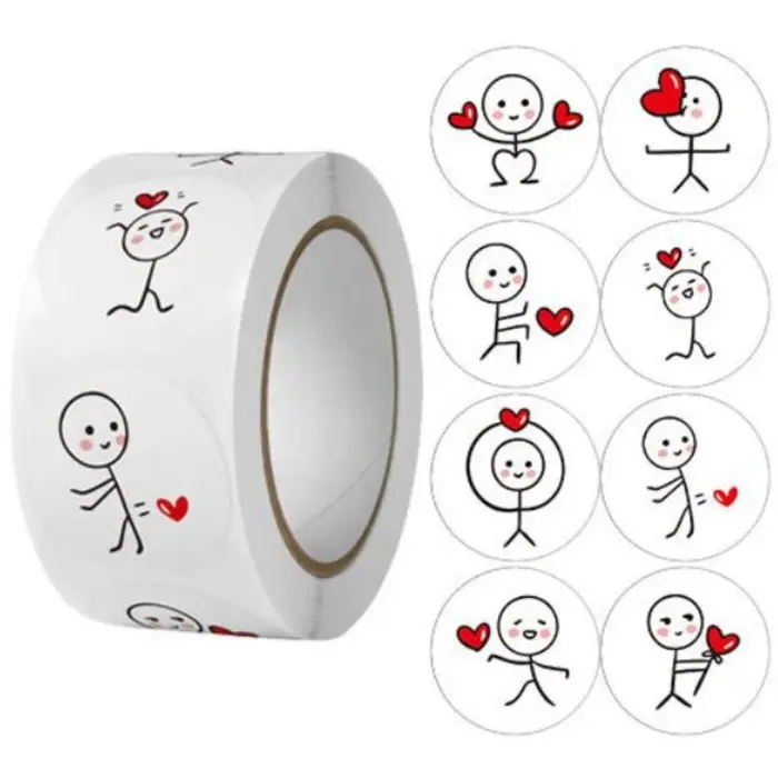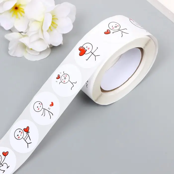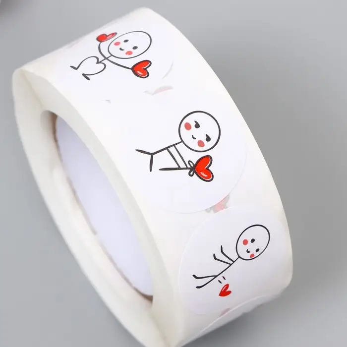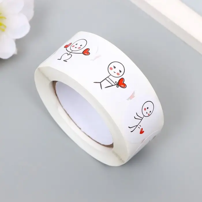 Наклейка бумага "Романтик" d=2,5 см 500 шт в рулоне 3х6,5х6,5 см