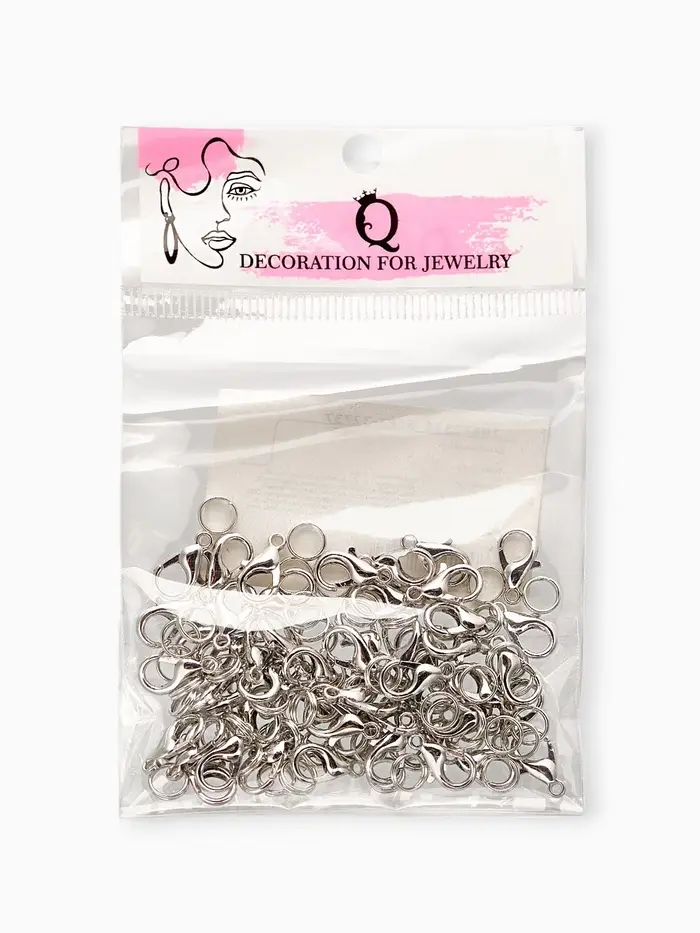 Замок-карабин (набор 55 шт.), 12×7 мм, цвет серебро