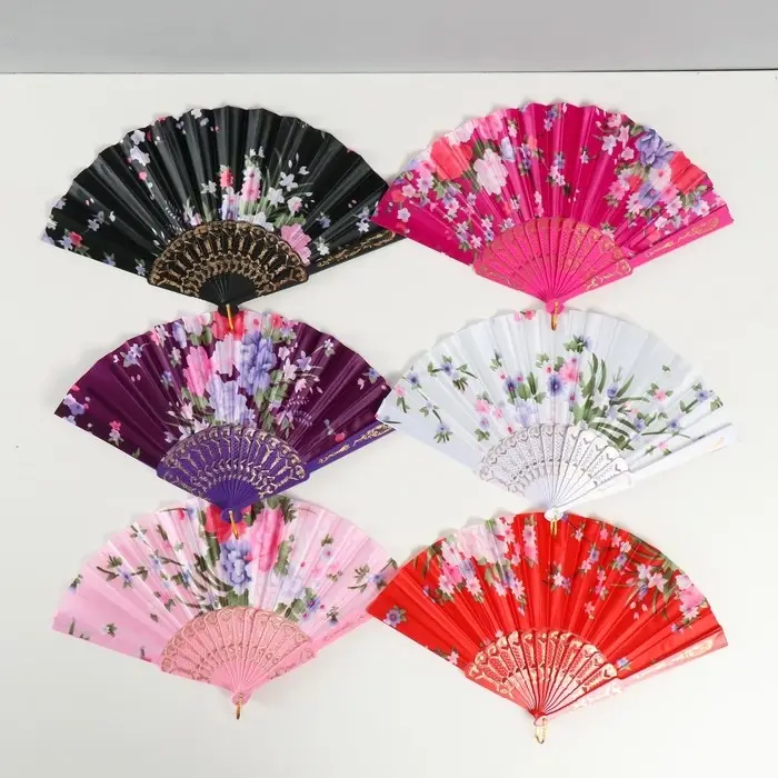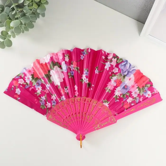 Веер пластик, текстиль "Цветочный" МИКС 23 см