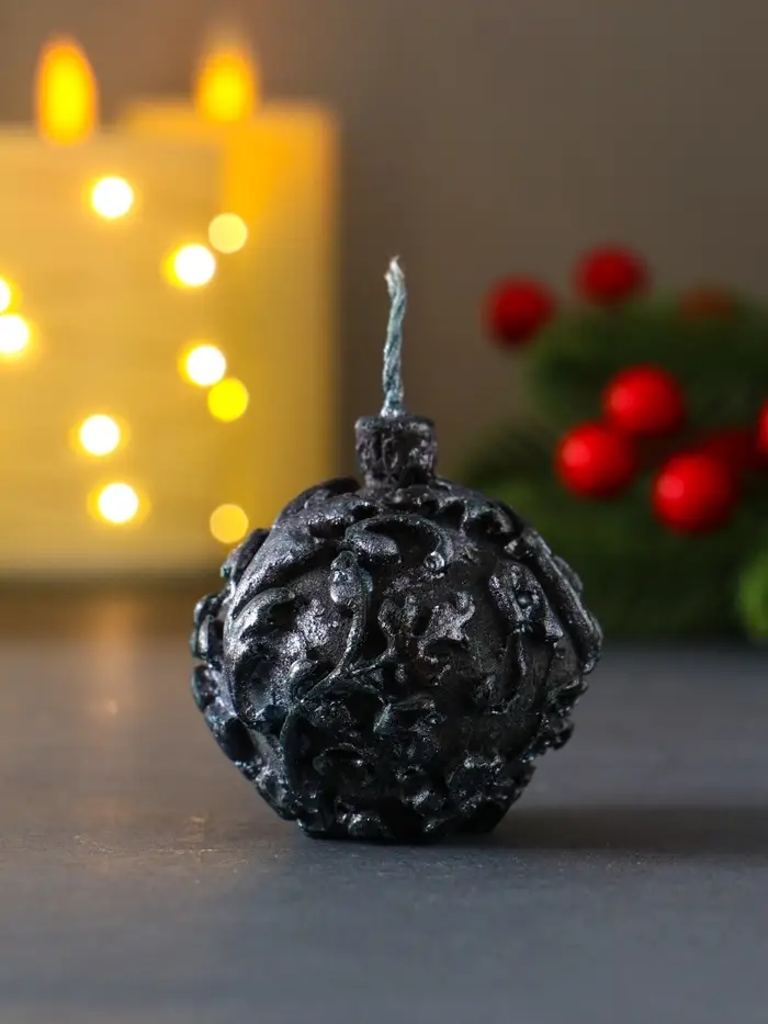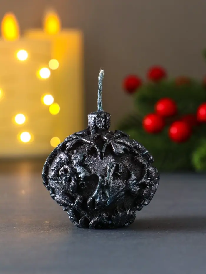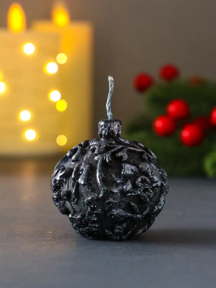 Свеча "Новогодний шарик", 55х55 мм, голубая роспись