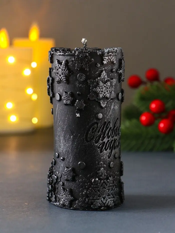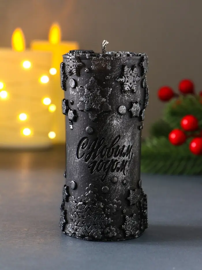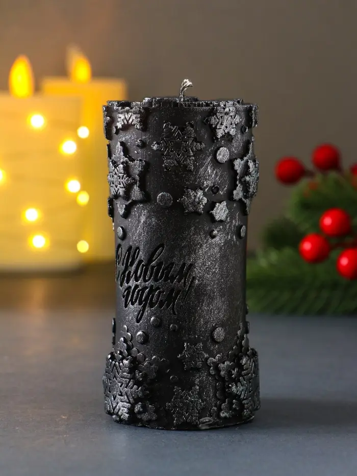 Свеча столбик "С Новым годом" 55*105 мм темно-синяя