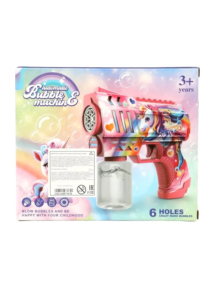 Генератор мыльных пузырей "Единорожка",световые эффекты, работает от батареек