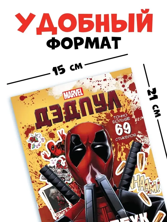 Стикербук "Дэдпул. Больше 69 стикеров", А5, Marvel