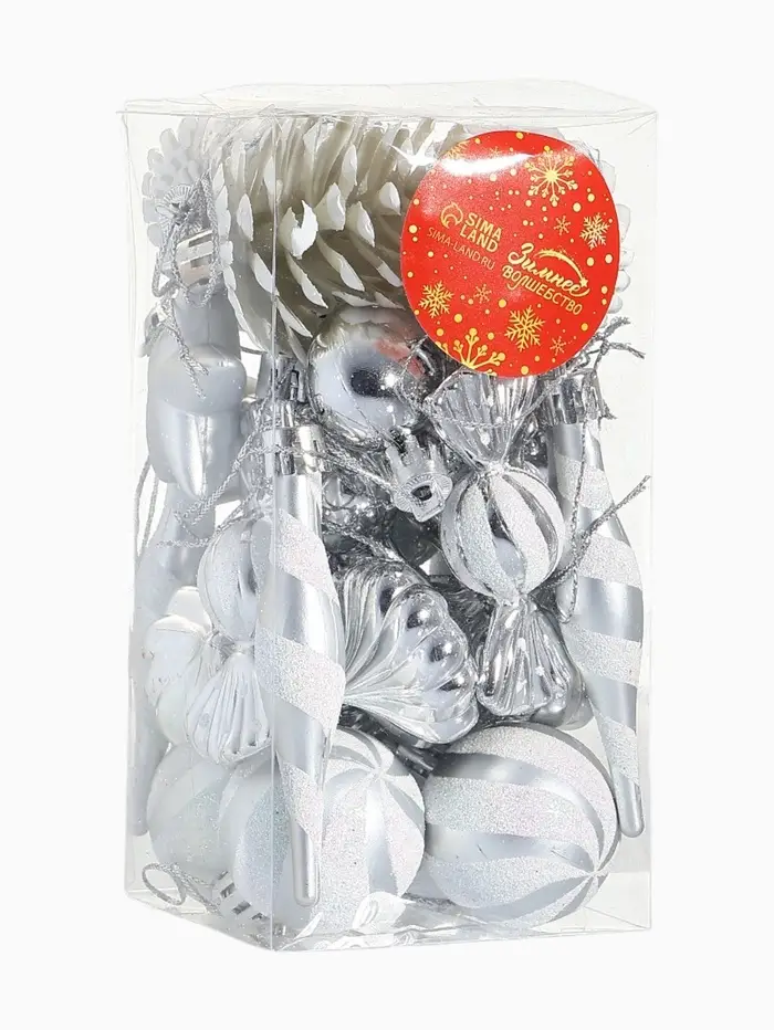 Набор украшений пластик 26 шт "Праздничный хоровод" 4 см, серебро