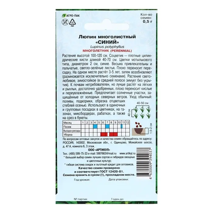 Семена Цветов Люпин "Синий", 0 ,5 г