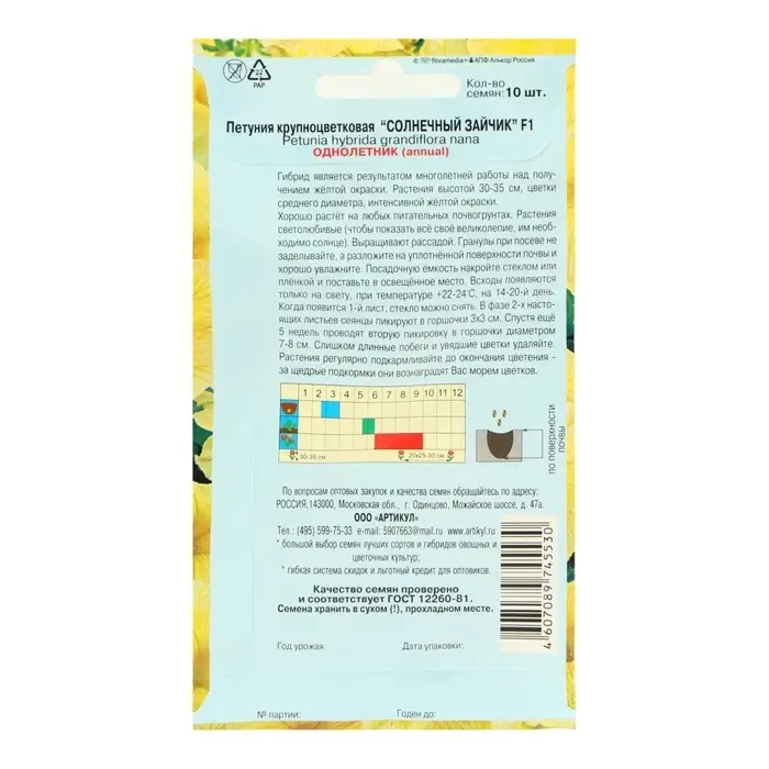 Семена Цветов Петуния крупонцветковая "Солнечный зайчик", 10 шт